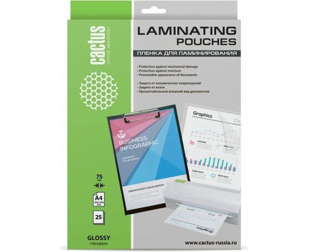 Пленка для ламинирования Cactus CS-LPGA47525 75мкм A4 25шт глянцевая 216x303мм