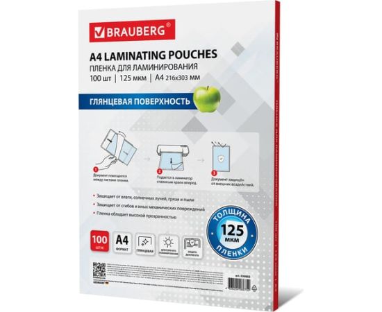 Пленка для ламинирования BRAUBERG надежно защитит документы от влаги, пыли, воздействия УФ-лучей и других внешних факторов.