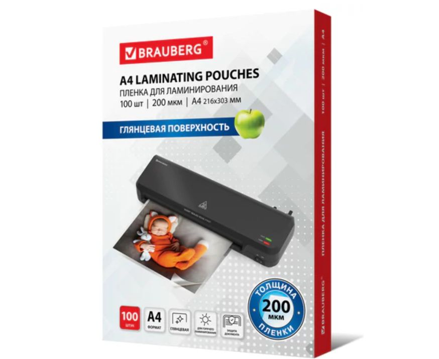 Пленка для ламинирования BRAUBERG надежно защитит документы от влаги, пыли, воздействия УФ-лучей и других внешних факторов.