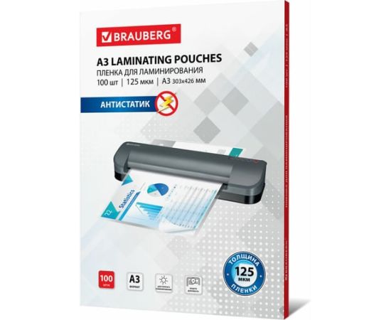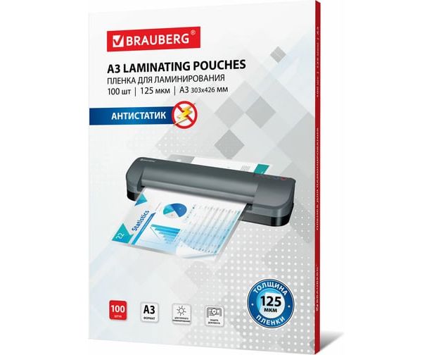 Пленки-заготовки для ламинирования BRAUBERG 531797 антистатик большого формата А3 125мкм 100шт