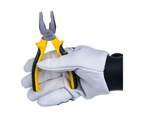 Плоскогубцы комбинированные TOPEX изготовлены из закаленной стали, режущие кромки подвергнуты индукционной закалке. Эргономичные рукоятки, покрытые антискользящим материалом, обеспечивают комфорт и безопасность во время работы. Инструмент превосходно подогнан по форме ладони.