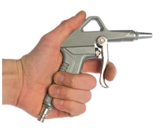 Пневмопистолет продувочный в блистере. Применяется в строительстве, автомастерских, на производствах для очистки от загрязнений поверхностей, углублений и отверстий.