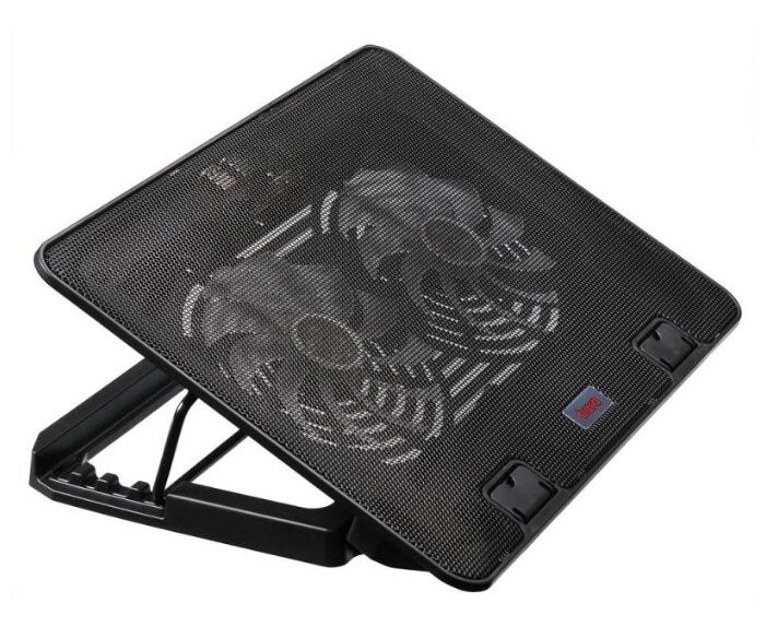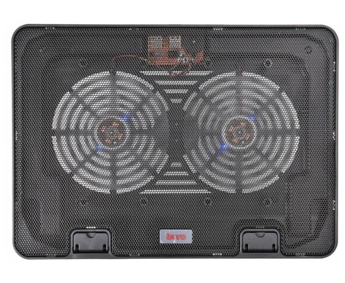 Подставка для ноутбука до 15,6" Buro BU-LCP156-B214 Black, 2 вентилятора: 140 мм, поток: 74.35 CFM, уровень шума: 22 dB(A), сквозной USB-разъём, LED подсветка, регулировка наклона, материал: металл, пластик