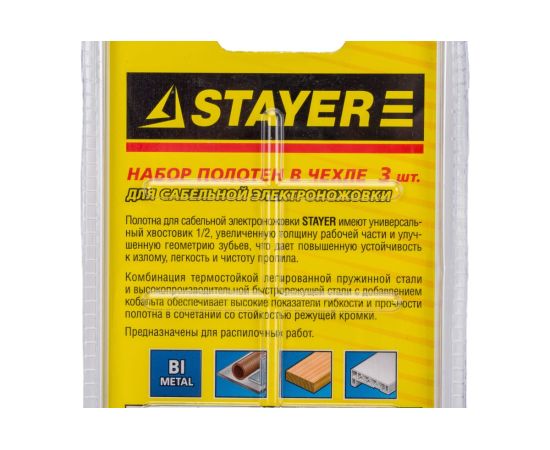 Набор полотен STAYER 159460-H3 используется совместно с сабельными электроножовками для пиления различных материалов. Включает в себя три полотна разных размеров, изготовленных из высококачественного металла. Полотна обеспечивают быстрый, качественный рез и имеют длительный срок эксплуатации.
