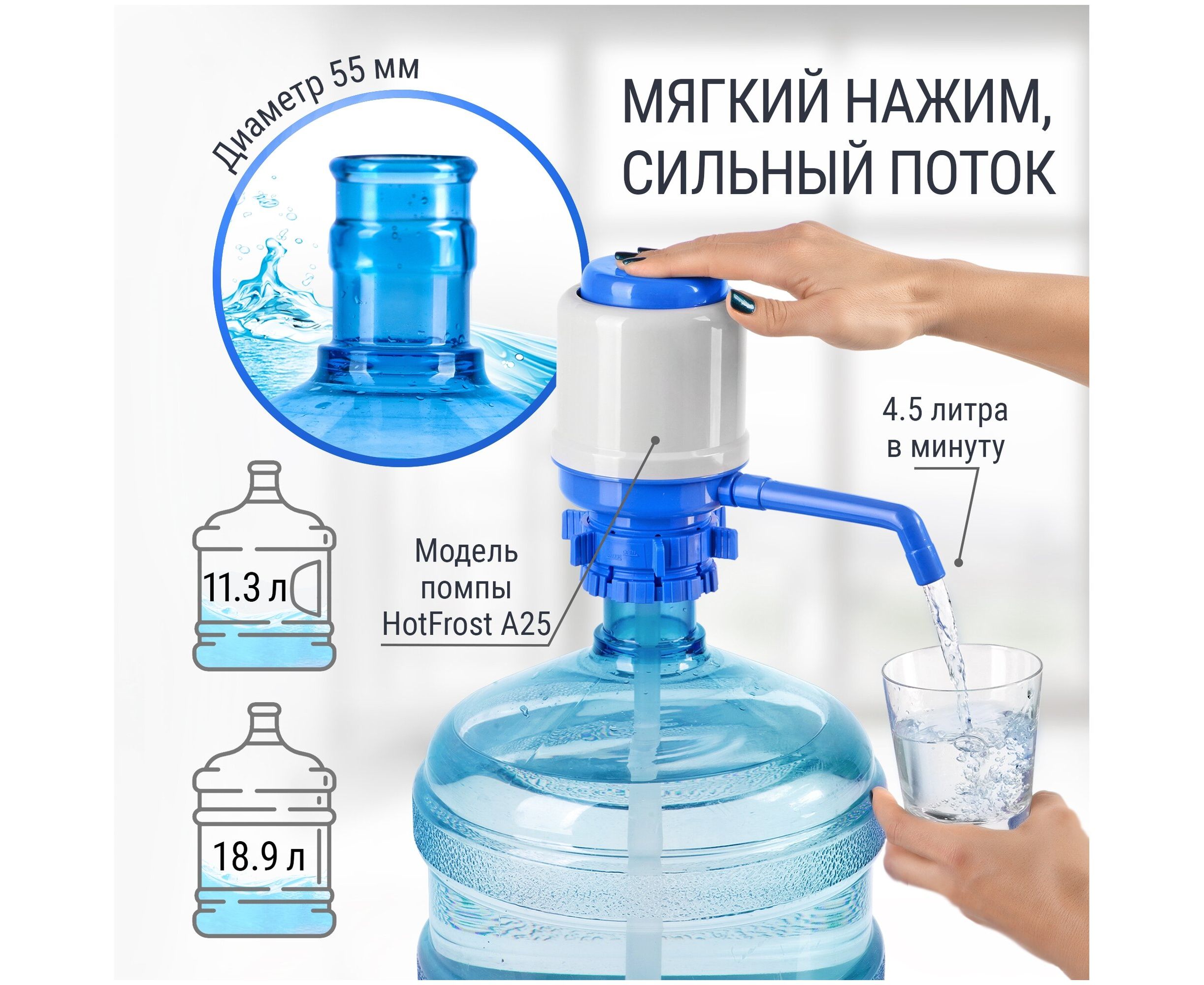 Помпа Hotfrost A25 (230402502) для 19л бутыли механический серый/синий картон