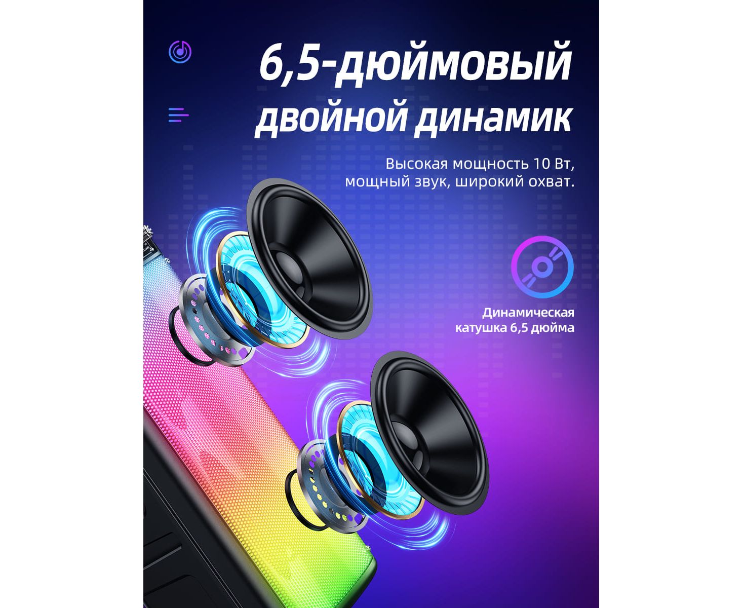 Динамик: 2*6.5 дюймов. Мощность: 10W*2.