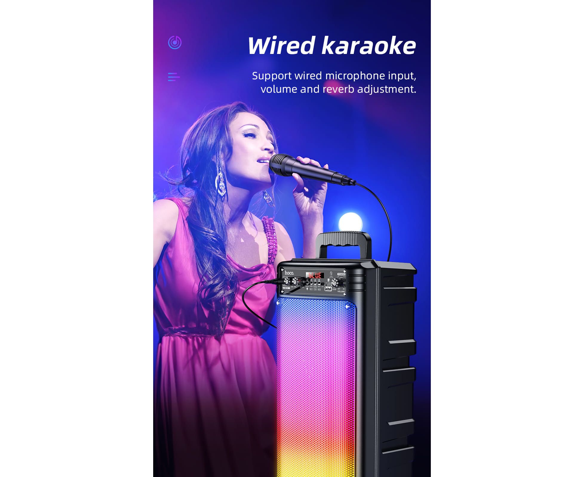 В комплекте 1 проводной микрофон. Независимое переключение подсветки.