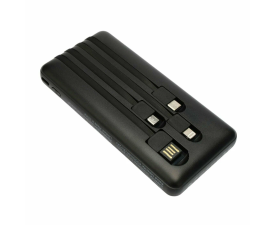 Портативный аккумулятор Gembird GPB-10C 10000мАч, 2A, 4 встр.кабеля, черный