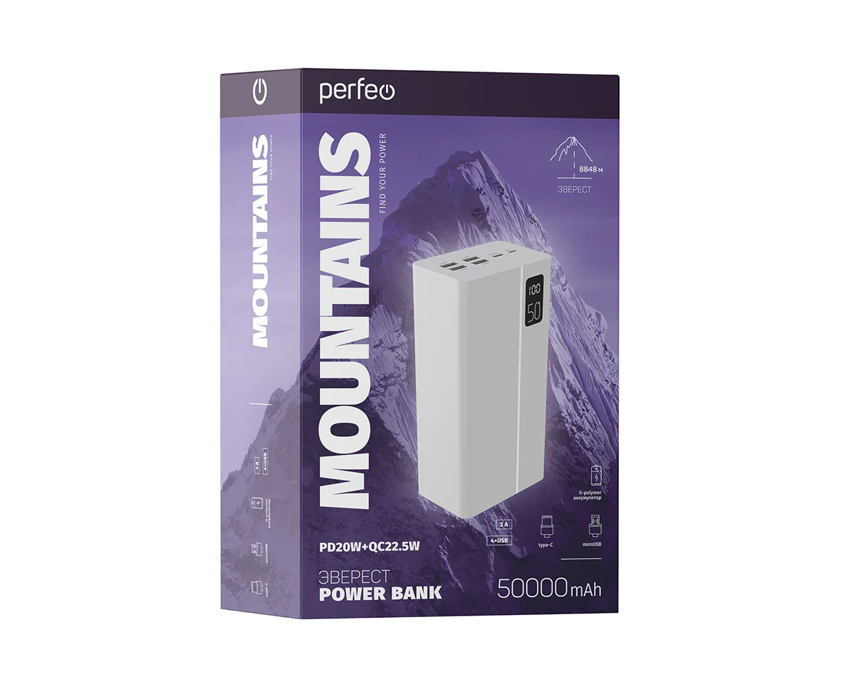 Power bank Perfeo Mountains PF_B4888 50000mAh White
