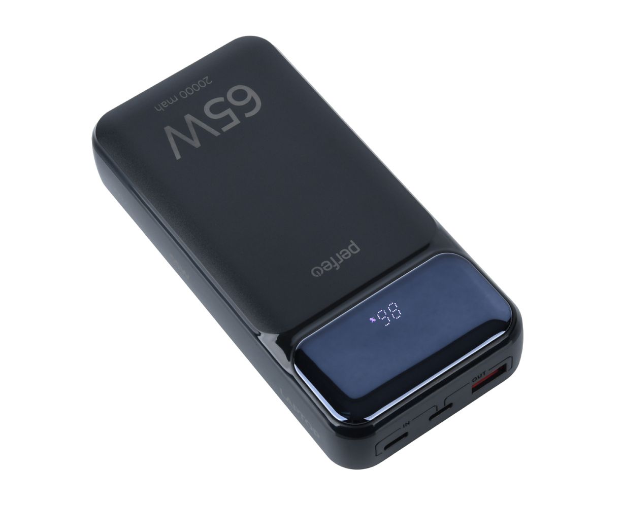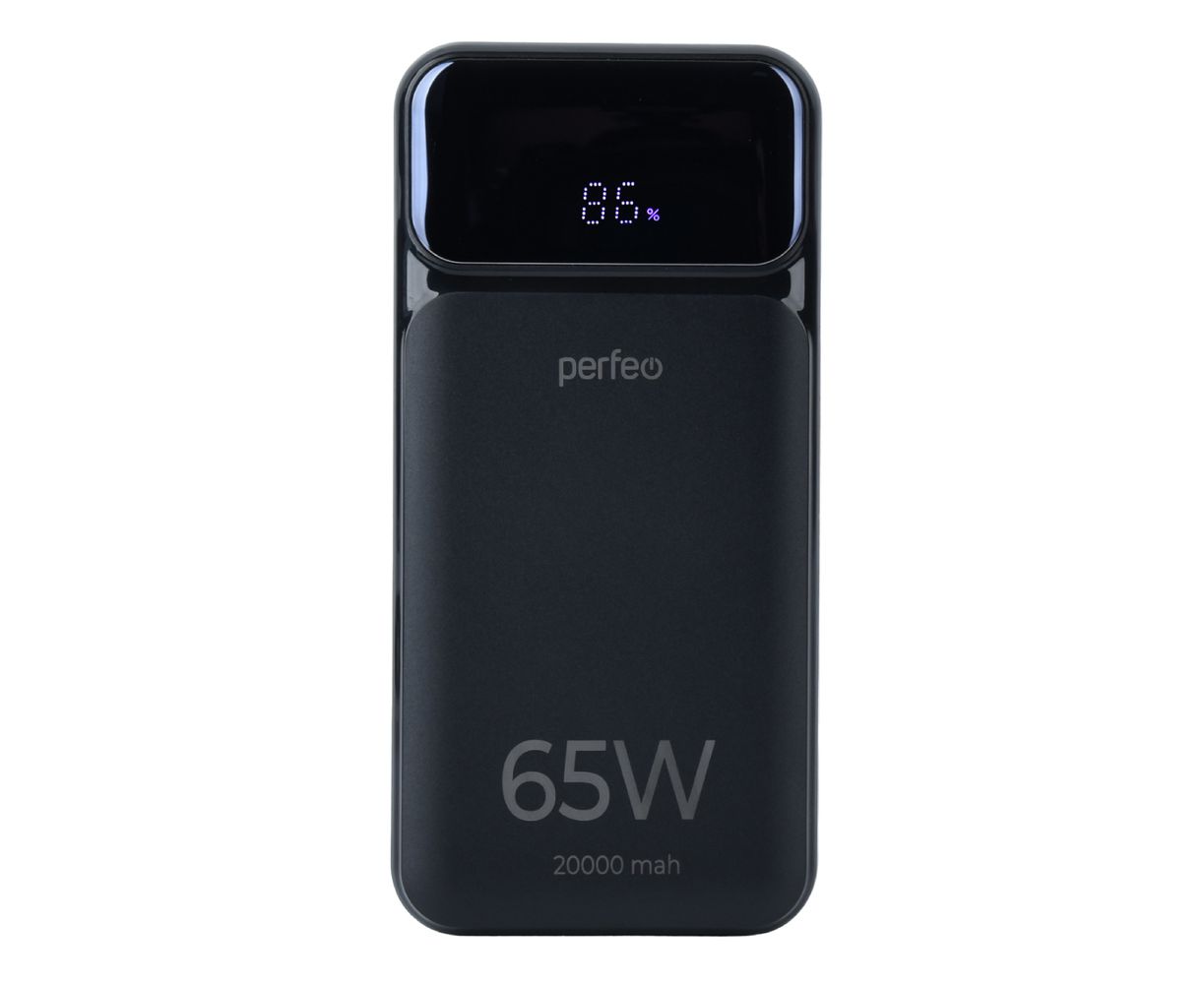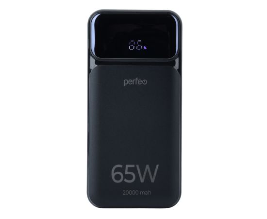 Powerbank Perfeo PF_E1636 Laptop 65W 20000mAh LED дисплей PD+QC 3.0 2Type-C 1 USB, max 65W Black