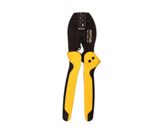 Пресс-клещи SHTOK 03304 относится к классу профессионального электромонтажного инструмента. Данная модель позволяет осуществлять обжим неизолированных коннекторов с площадью сечения от 0.5 до 6 квадратных мм. Ручки пресс-клещей покрыты двухкомпонентными чехлами: зоны из мягкого пластика обеспечивают более удобный захват. Рабочая часть изготовлена из качественной стали и устойчива к коррозии благодаря хромированию.