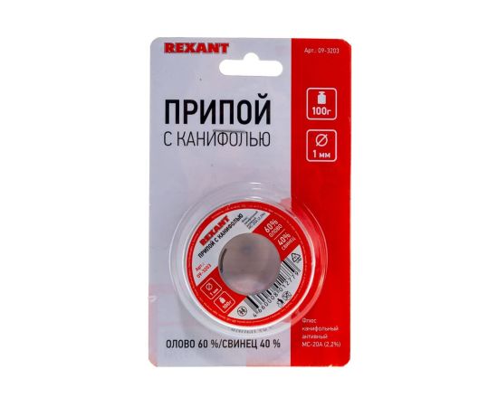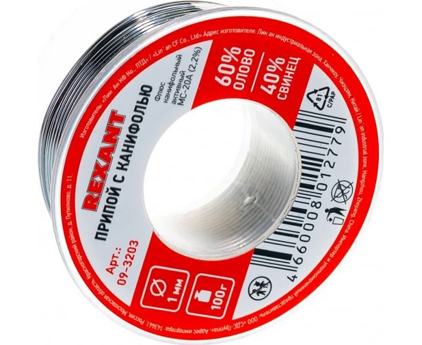 Припой с канифолью REXANT (09-3203) олово-60проц., свинец-40проц., 100гр, 1мм