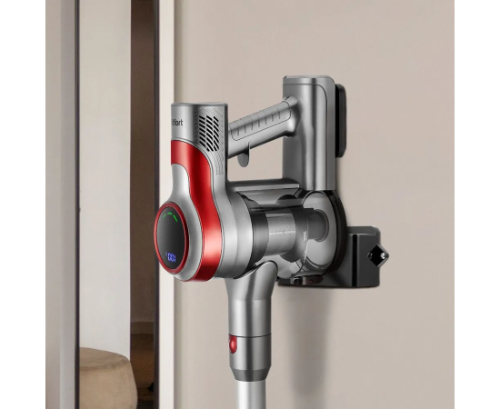 Зафиксируйте пылесос на кронштейне на стене. Так пылесос займёт меньше места при хранении и не упадёт, если вы случайно его заденете.