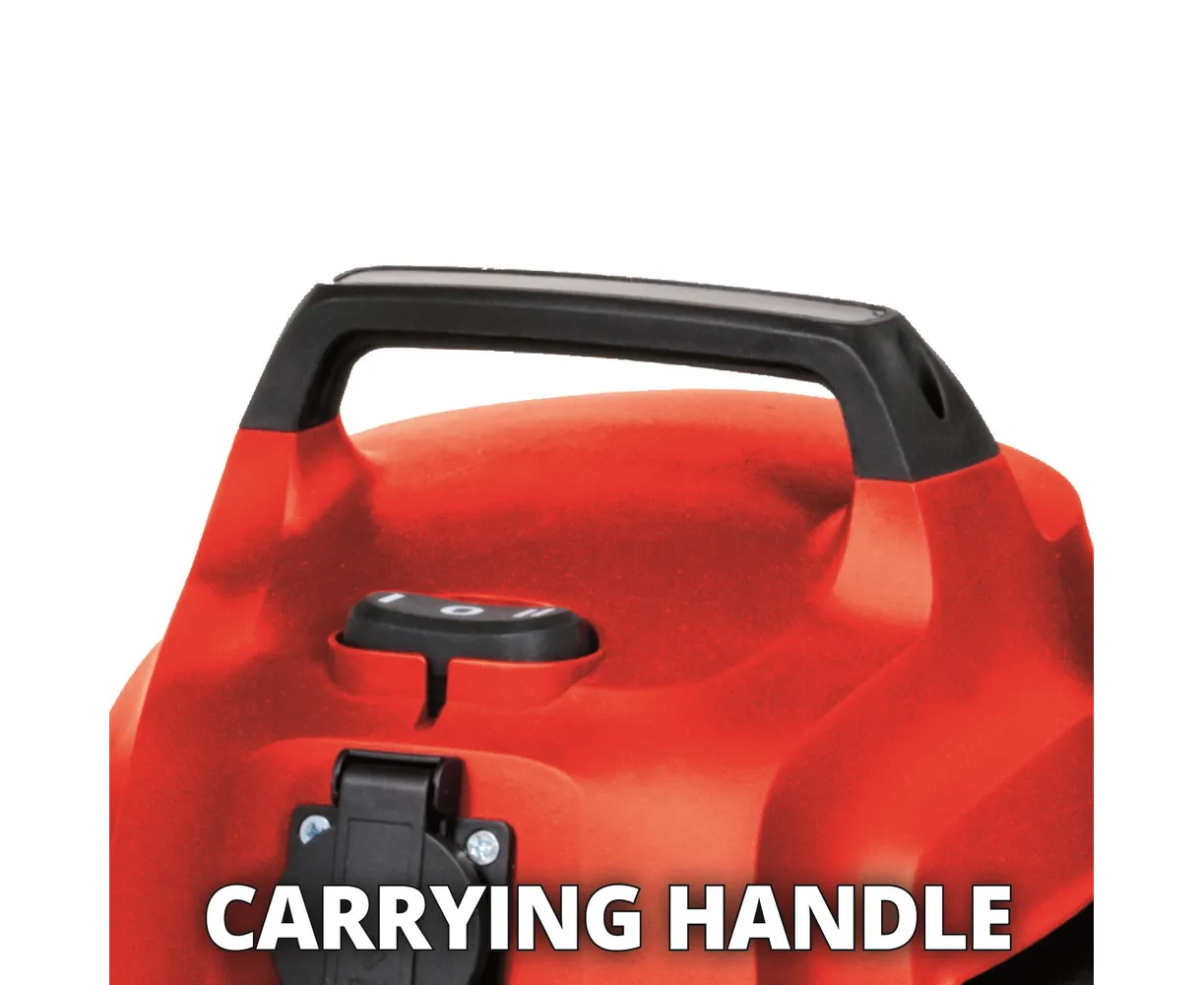 Строительный пылесос Einhell TC-VC 1820 SA 2342425 универсален в использовании. Подходит для сбора сухого и влажного мусора в жилых помещениях, мастерских, гаражах, подвалах. Имеет розетку для подключения электроинструмента мощностью до 2200 Вт.