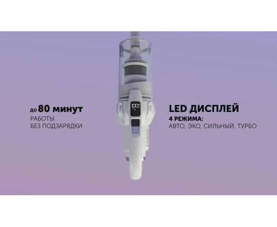 Циклоническая система сбора пыли. 4 режима работы: средний, сильный, турбо, авто.