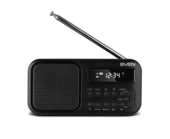 Радиоприемник SVEN SRP-50, черный (3 Вт, Bluetooth, FM, USB-C, 3.5мм jack, ,будильник, встроенный аккумулятор)