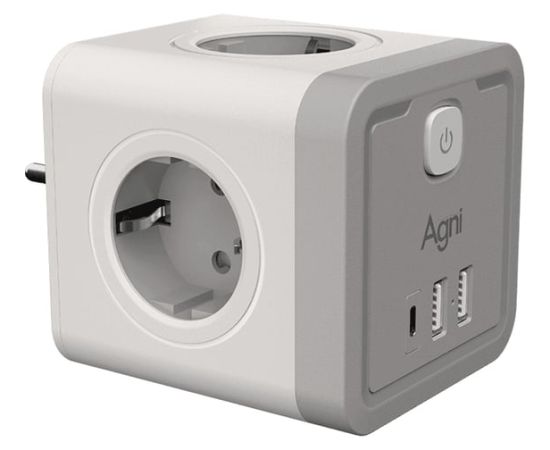Разветвитель AGNI TP-WJ3U4E-C-white 4 розетки, 16А, 4000Вт, 220-250В, 2*USB, Type-C, белый