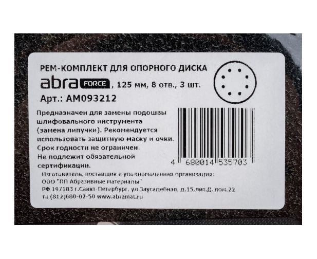Рем-комплект для опорного диска Abraforce АМ093212 125мм 8 отв (уп 3 шт)
