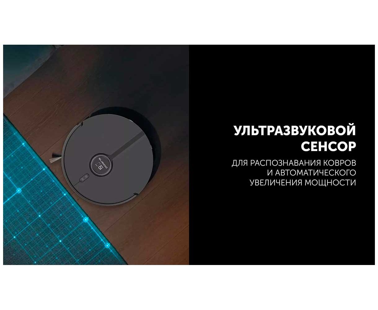 Датчики: датчики препятствий, датчики перепадов высоты, датчики движения вдоль стен, лазерные дальномеры, датчик распознавания ковров