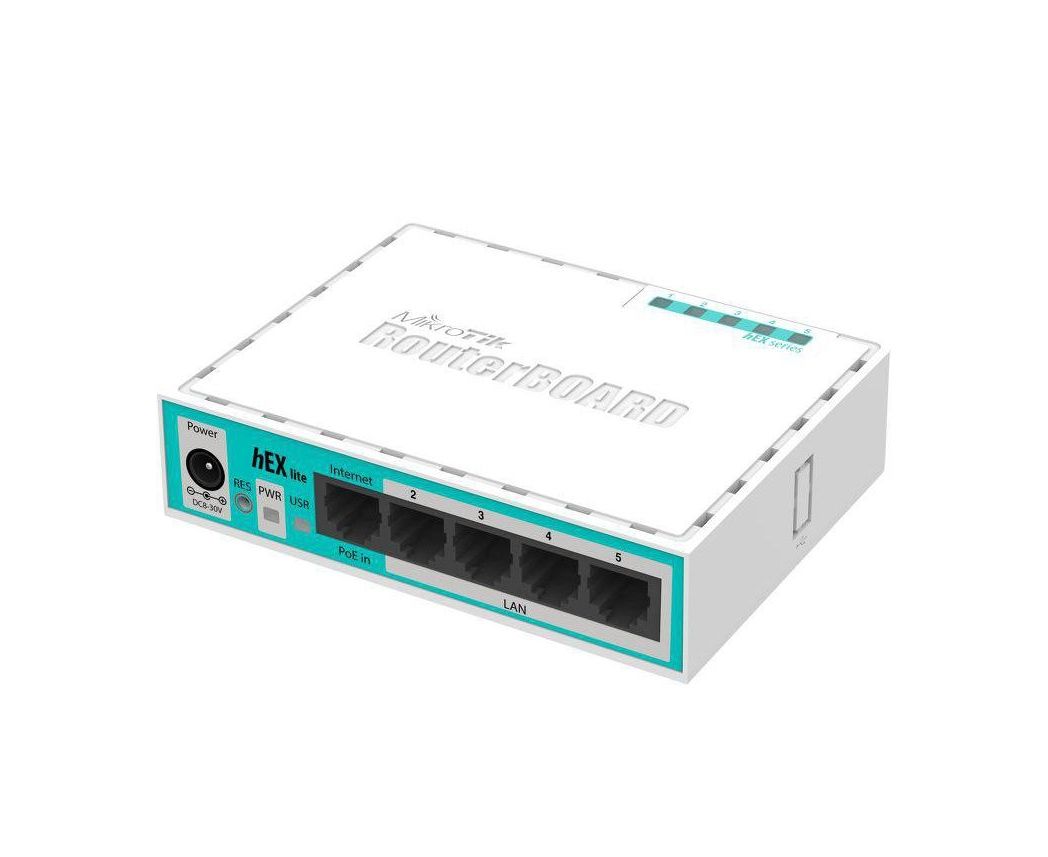 Описание Маршрутизатор MikroTik hEX lite с 5×10/100 Мбит/с портами, с поддержкой Auto-MDI/X. Оснащен мощным сетевым процессором QCA9531-BL3A-R — 850MHz, и установлено 64MB DDR RAM.