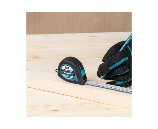2.Корпус рулетки 3 м x 16 мм GROSS Ergonomisch 31101 имеет антискользящее покрытие, благодаря чему она не выскальзывает из рук во время работы.