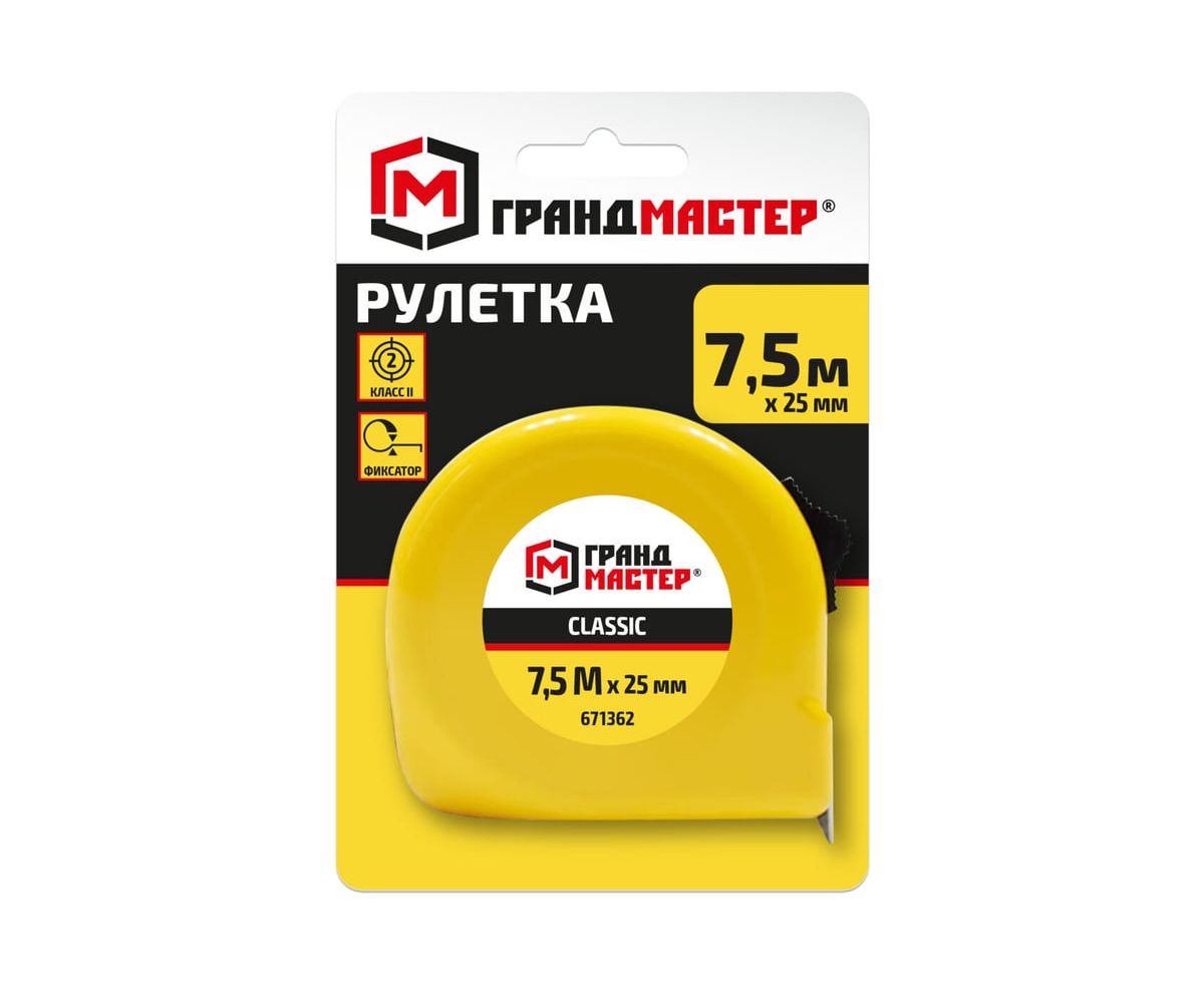Рулетка измерительная ГРАНДМАСТЕР 671362 Classic 7,5м*25мм, пластиковый корпус, с фиксатором