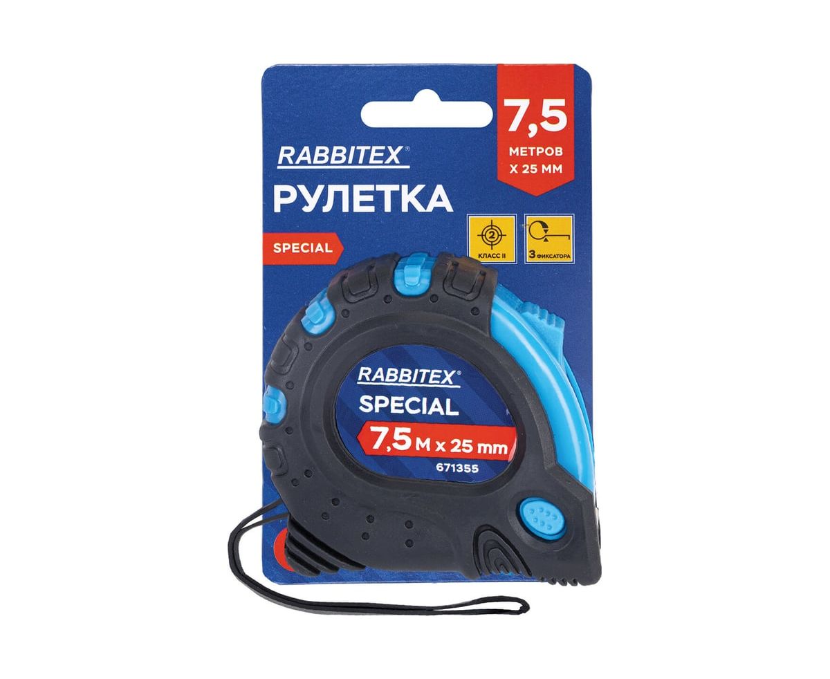 Рулетка измерительная RABBITEX 671355 Special 7,5м*25мм, обрезиненный корпус, 3 фиксатора