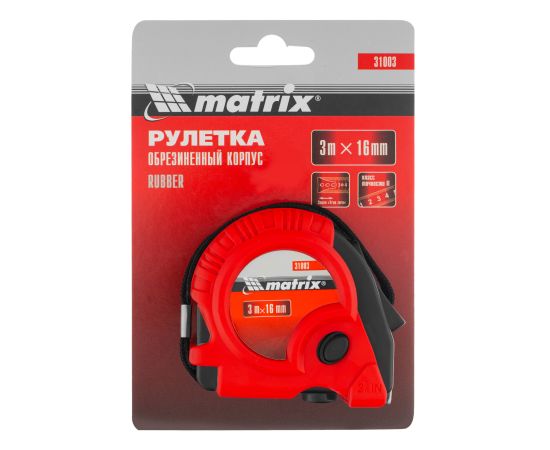 Рулетка MATRIX Rubber 31003 3 мх16 мм, обрезиненный корпус