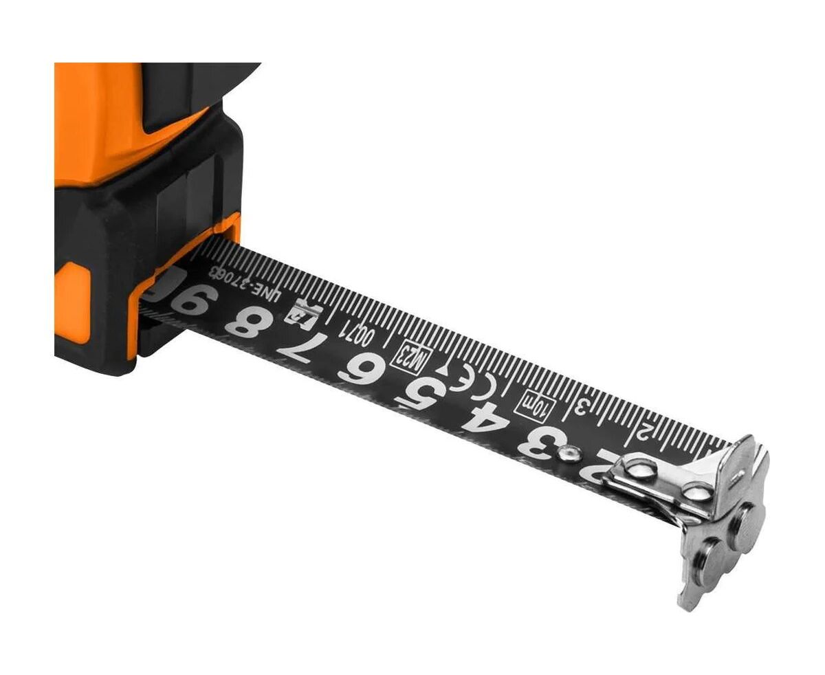 Рулетка NEO TOOLS Super Black 67-245 стальная 10 мx25 мм, автоматическая блокировка, две кнопки остановки, магнит