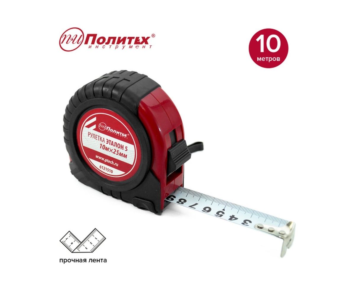 Рулетка Политех Эталон-5 (6121510) 10м*25мм обрезиненный корпус
