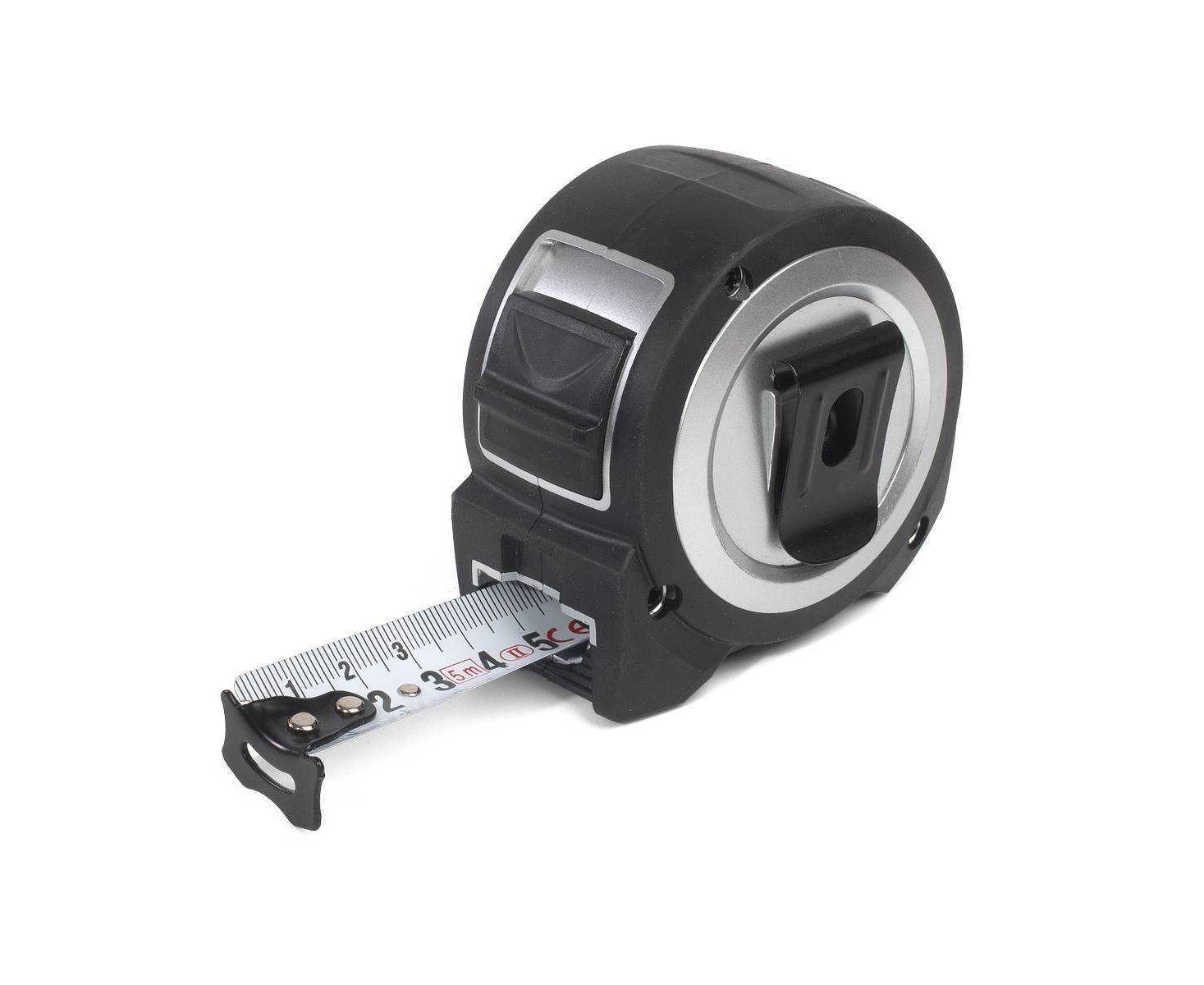 Подвижный (для компенсации толщины при внутренних и наружных замерах) стальной зацеп на конце ленты