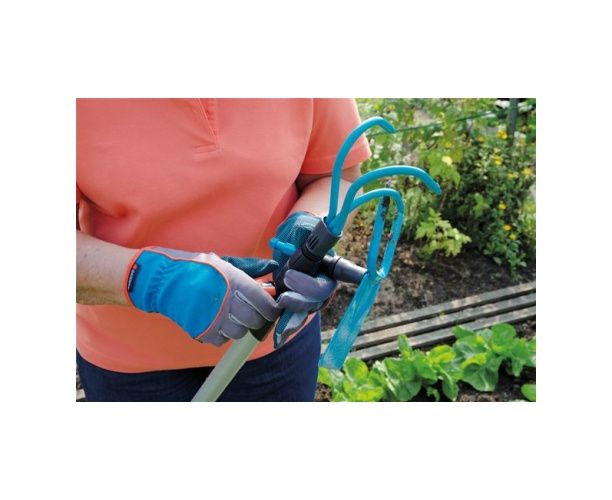 Культиватор для Комбисистемы GARDENA снабжен тремя прочными зубцами, идеально приспособленными для рыхления и аэрации почвы без повреждения корневой системы растений.