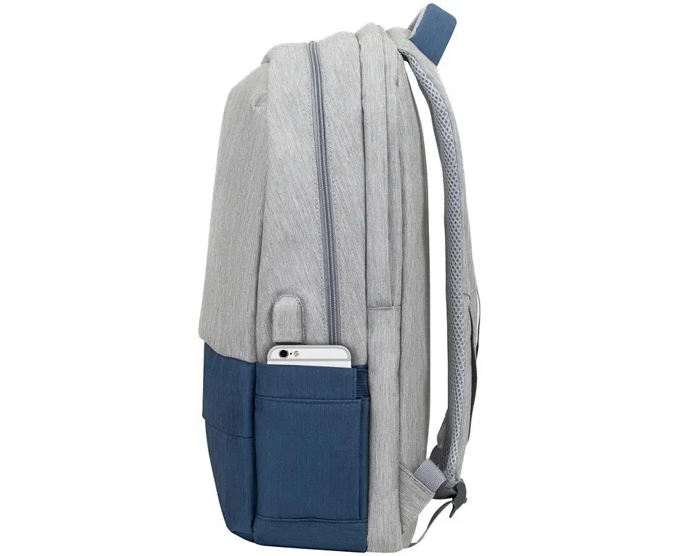 Рюкзак для ноутбука 17.3" Riva 7567 серый/темно-синий полиэстер