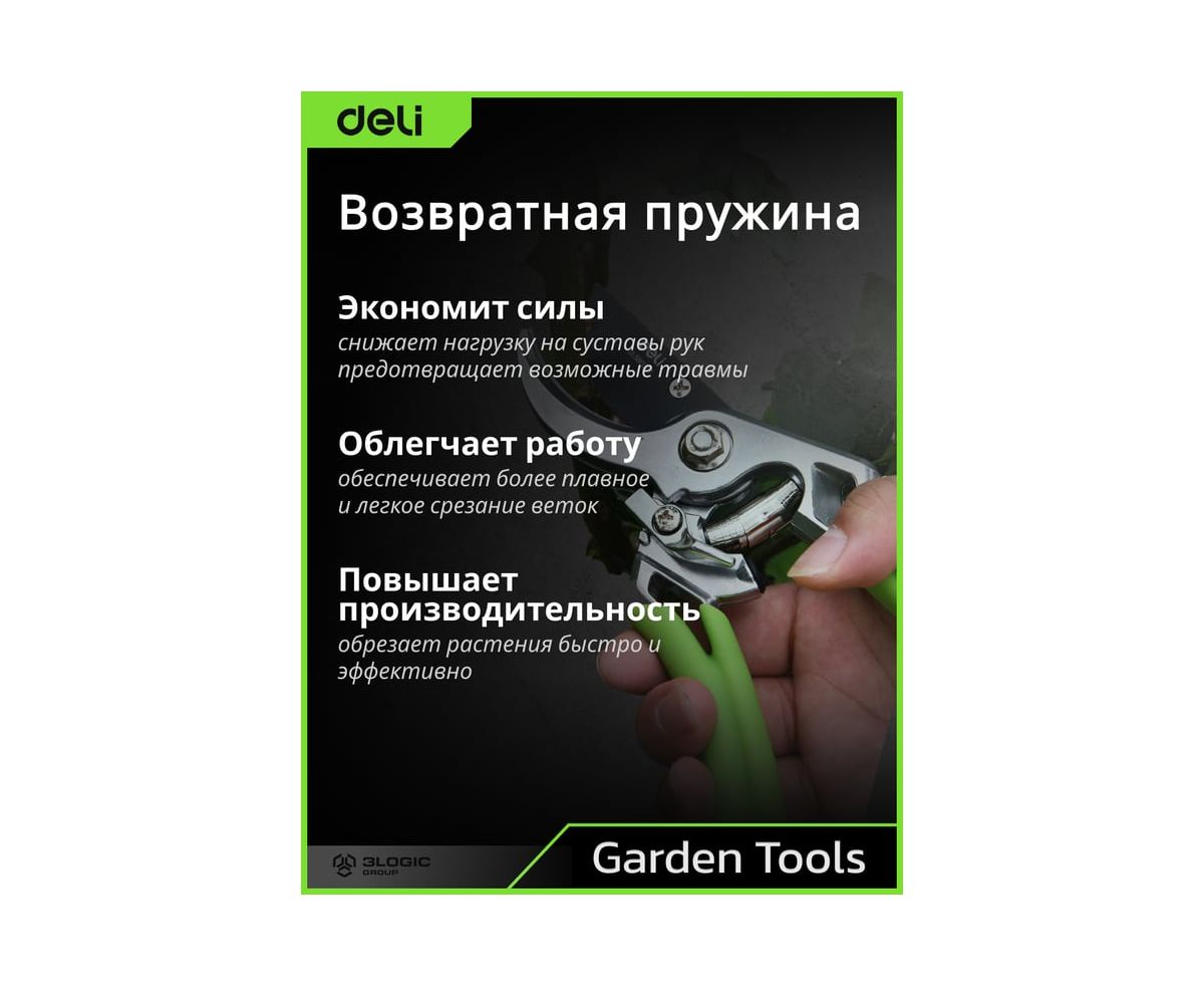 Секатор садовый DELI 215 мм DL580207 представляет собой надежный инструмент для ухода за садом.
