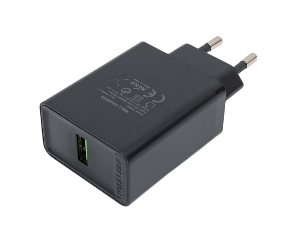 Сетевое зарядное устройство Vention FABB0-EU на 1 порт USB A QC 3.0 2.4A Черный