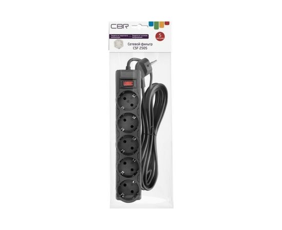 Сетевой фильтр CBR CSF 2505-5.0 Black PC, 5 евророзеток, длина 5 метров, чёрный