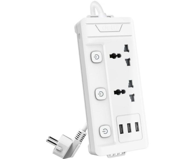 Сетевой фильтр Deli ET409 2м (2 розетки) белый (пакет ПЭ)