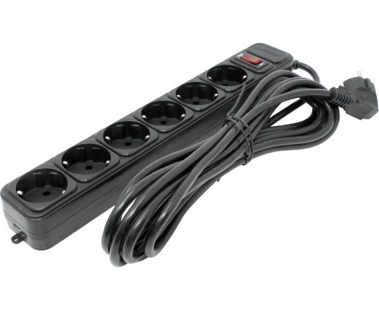 сетевой фильтр на 6 евророзеток, суммарная мощность нагрузки: 2.2 кВт, максимальный ток нагрузки: 10A, кабель 5м, чёрный