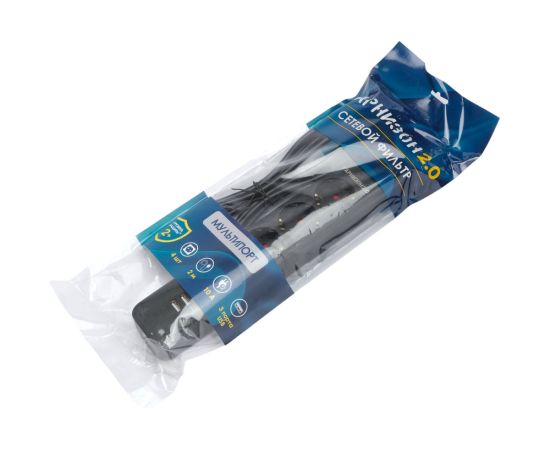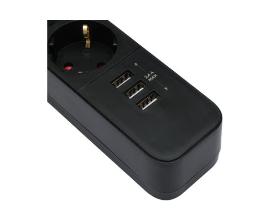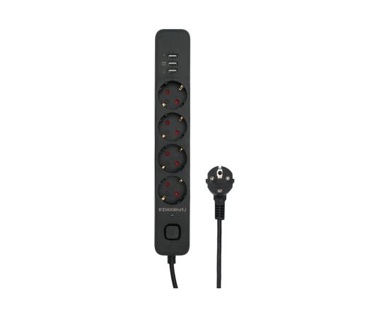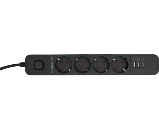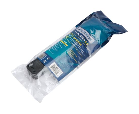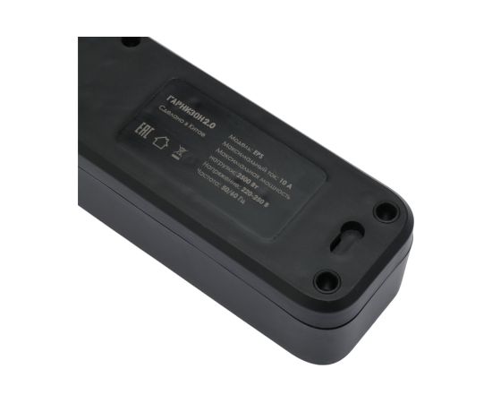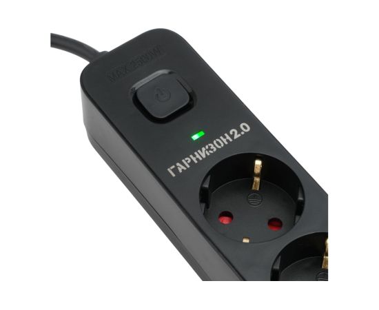 Сетевой фильтр Гарнизон EPS-4-U3-B-2 черный, 4 розетки 220В, 10А, 3 розетки USB-A 5В, кабель 2м, ур.защиты 2+, пакет