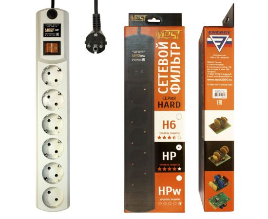 Сетевой фильтр Most HP 2м (6 розеток) белый (коробка)