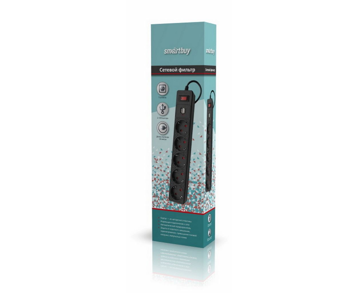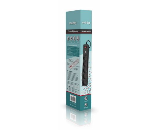 Сетевой фильтр SmartBuy SBSP-18U-K с USB, 10А, 2 200 Вт, 5 розеток, длина 1,8м, черный