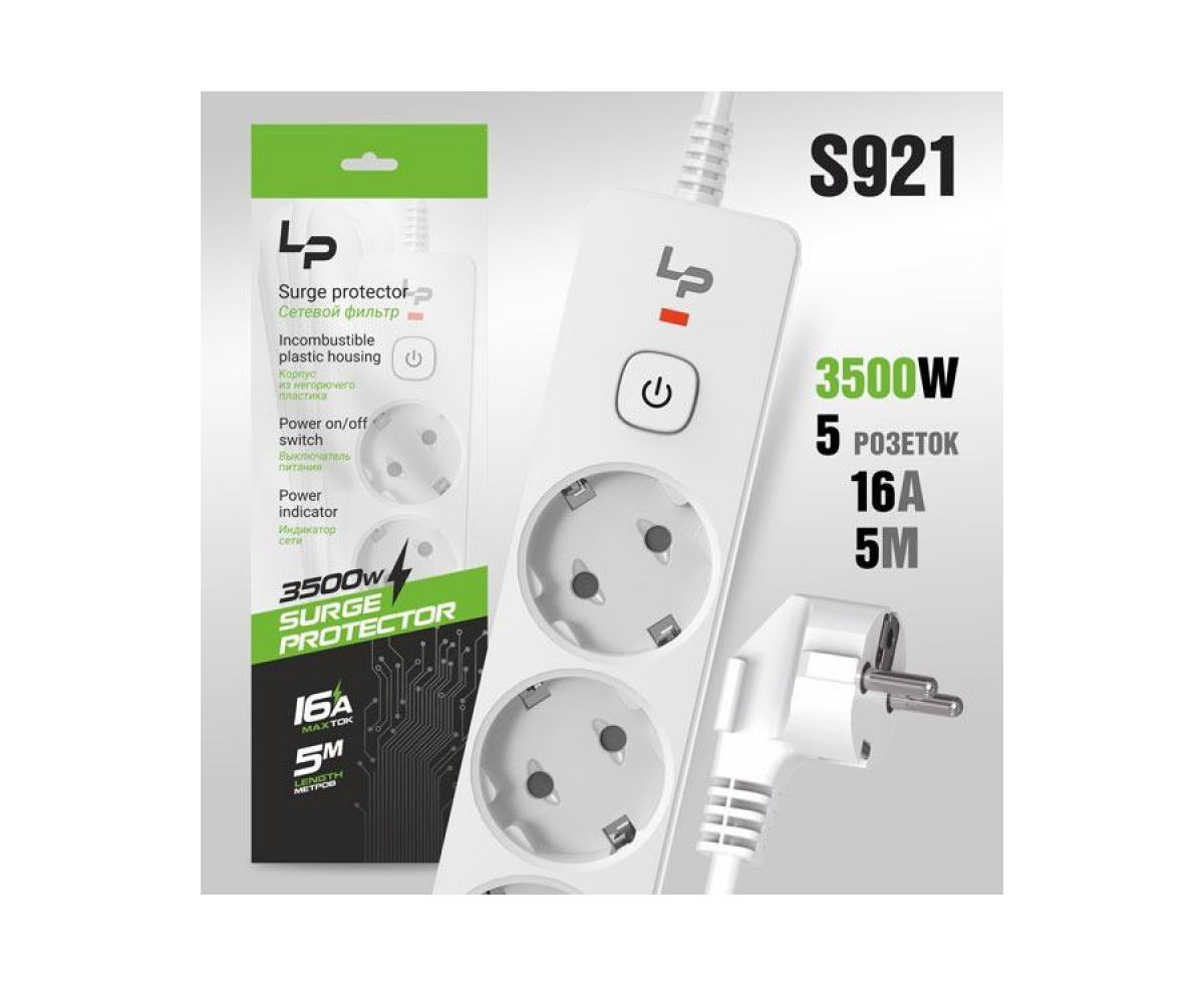 Сетевой фильтр-удлинитель Live-Power LP5145 5розеток С/З 16А с выкл. 5м white