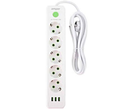 Сетевой удлинитель Amper JH-1033U-2W 2,0м, 5 розеток белый