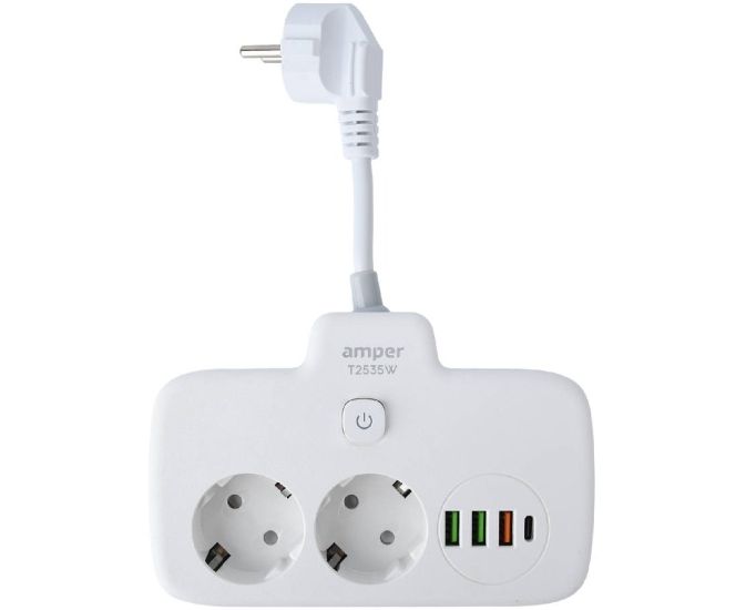 Сетевой удлинитель Amper T2535W 0,2м, 2 розетки белый