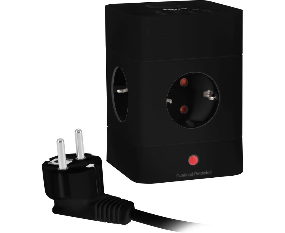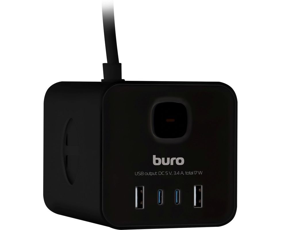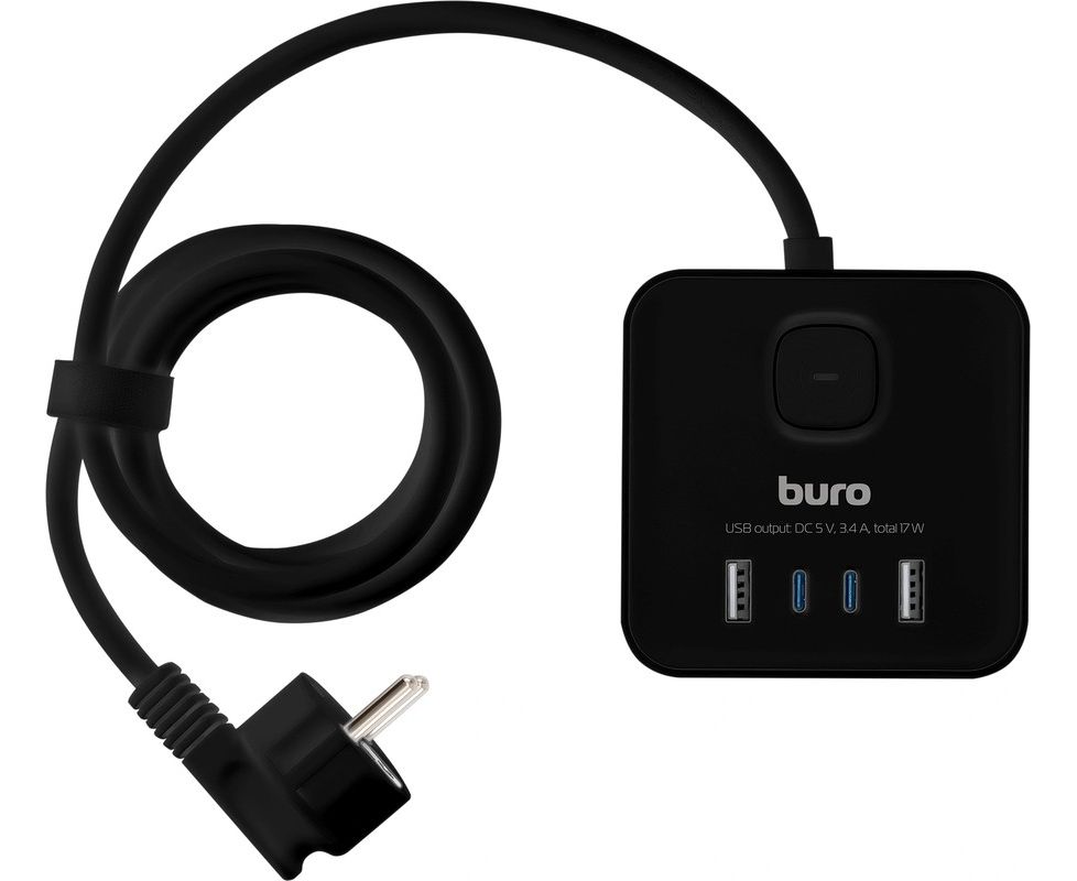 Сетевой удлинитель Buro BU-PTE4.1UC-Plus-B, 1.5м, черный
