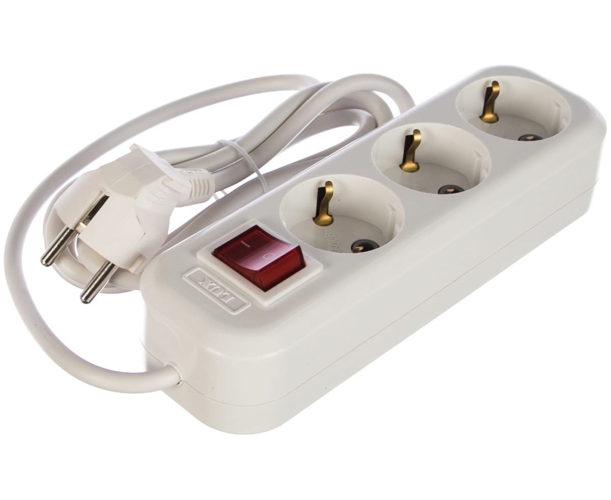 Сетевой удлинитель LUX У3-ЕВК-02 3-местный с з/к (250В/16а/2м)