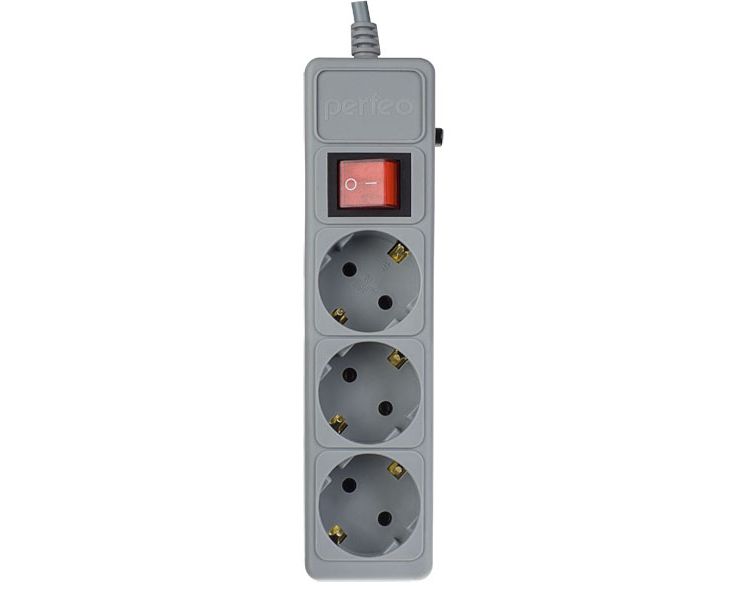 Сетевой фильтр Perfeo "POWER+", 5,0м, 3 розетки, серый (PF-PP-3/5,0-G)