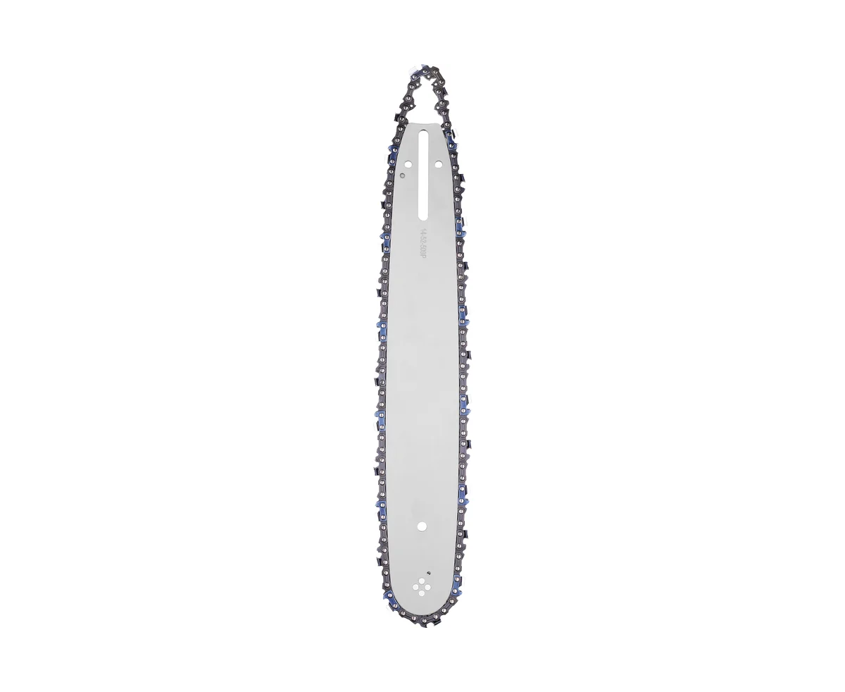 Шина с цепью отлично подогнаны друг к другу, вибрации и шум при работе сведены к минимуму. Шина защищена от отдачи, имеет небольшой вес и высокую маневренность.