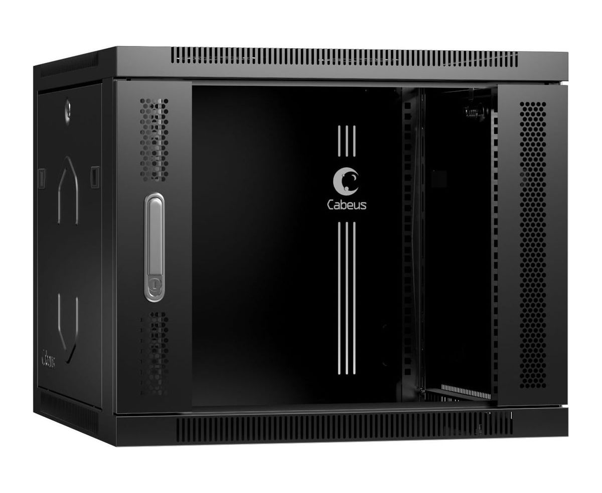 Шкаф коммутационный CABEUS SH-05F-9U60/60-BK настенный, стеклянная передняя дверь, 9U, 600x501x600 мм
