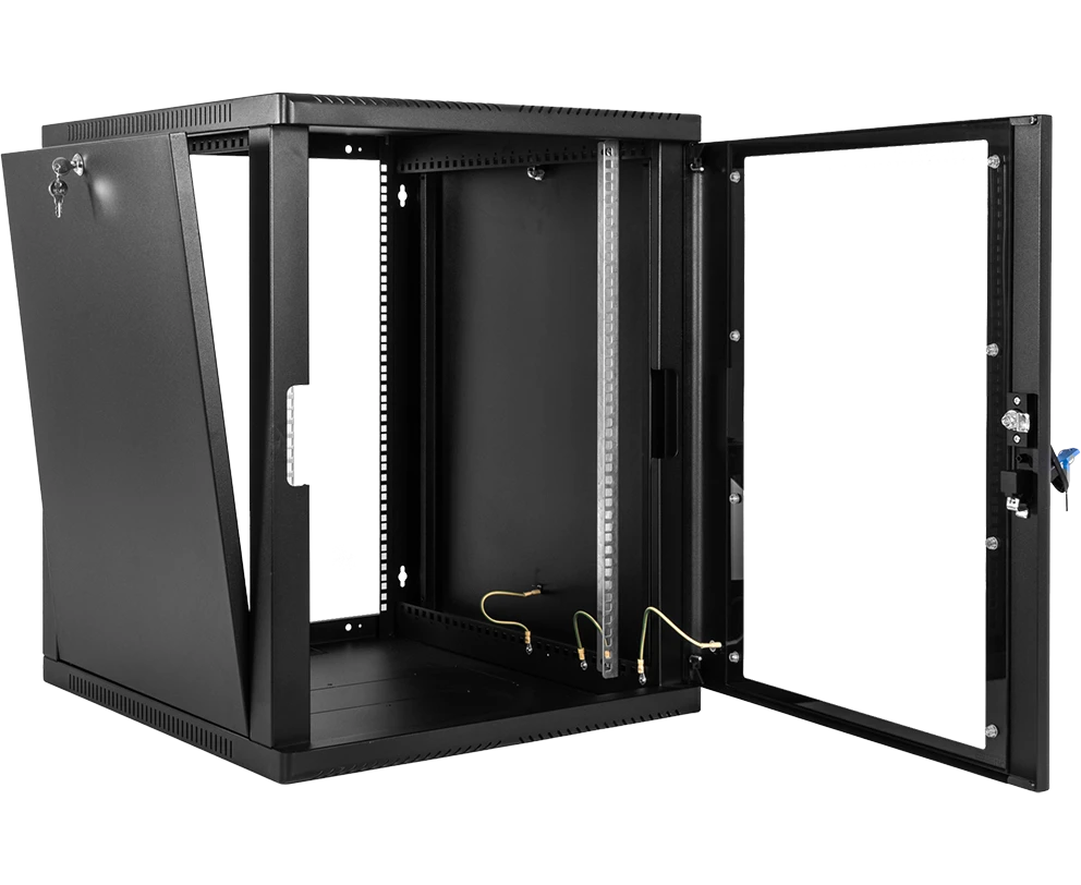 Шкаф коммутационный ЦМО ШРН-12.350-9005 настенный 12U 600x359мм пер.дв.стекл 200кг черный 300мм 14кг 180град. 612мм сталь
